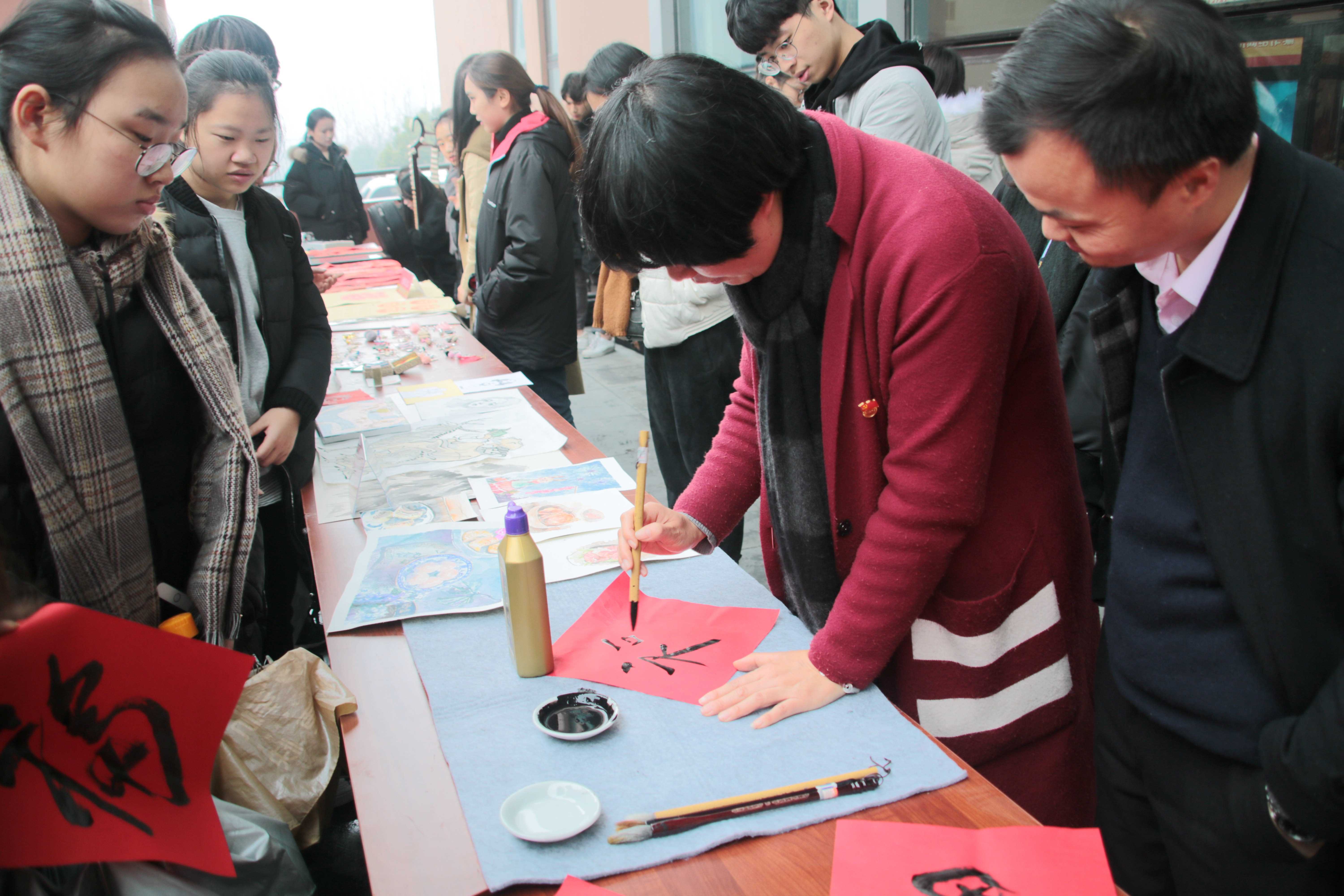 作品展现场吸引了全校师生驻足欣赏,对作品所传递的祝福表达了认可和喜爱,很多老师兴趣盎然,现场题写了新春祝福。