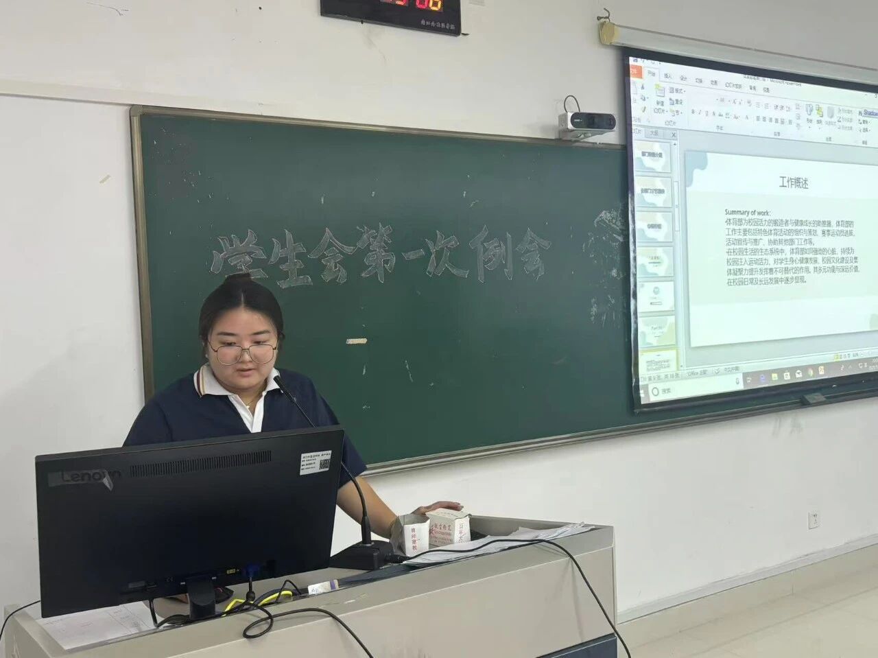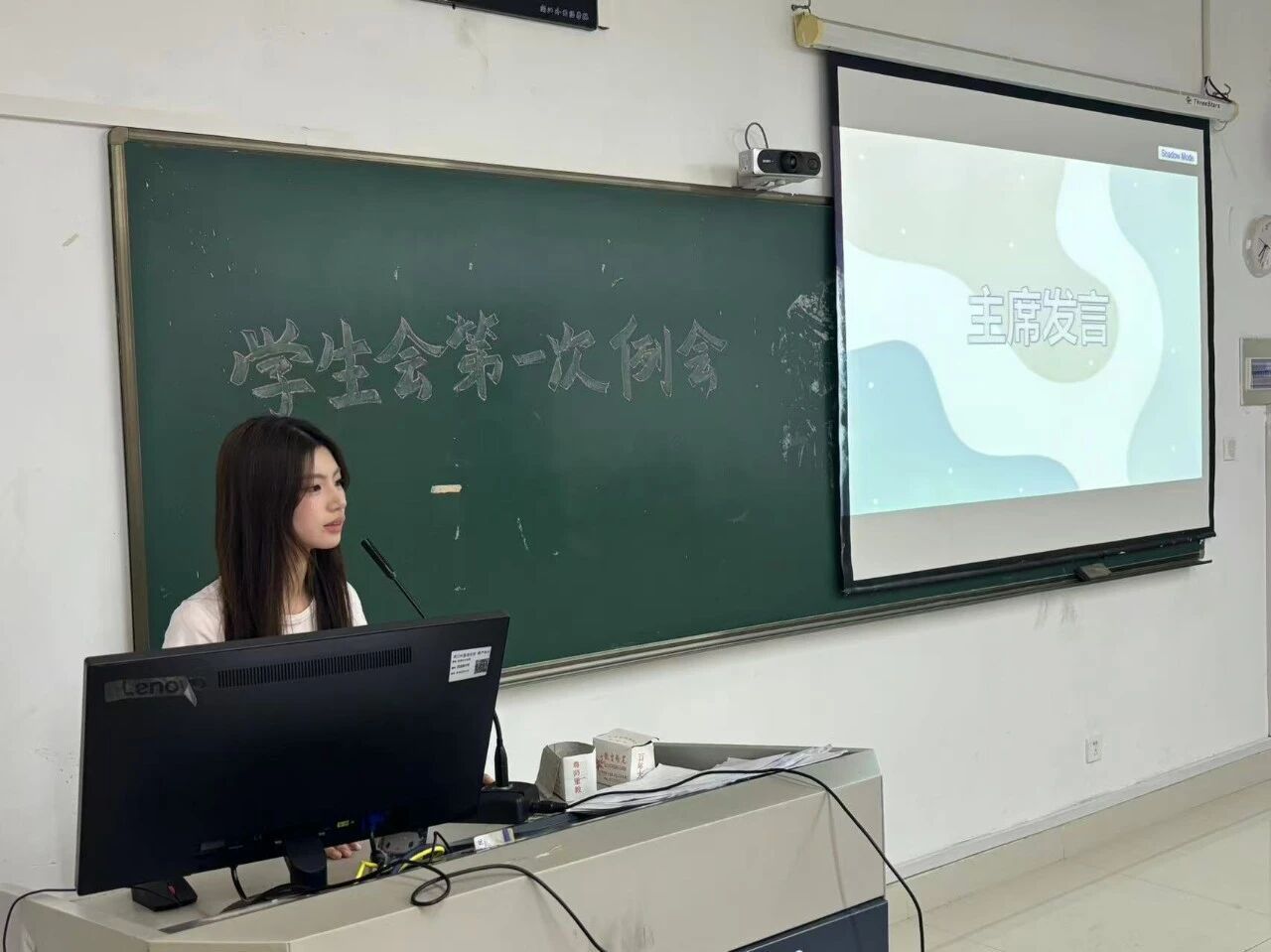 学生会主席吴玥在发言中提出“主动沟通、勇于尝试、团结协作”的工作理念,并详细介绍了本学期重点工作安排。她强调,学生会成员应当以身作则,在各项活动中发挥表率作用,为丰富校园文化生活贡献力量。