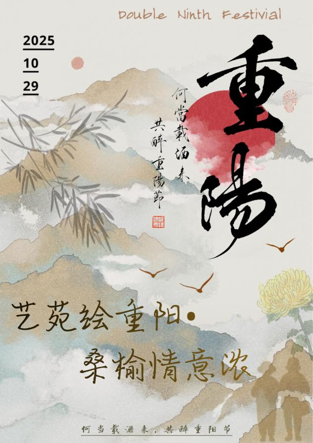 岁岁重阳,今又重阳。重阳节作为我国重要传统节日,具有尊老敬老、祈福安康的美好寓意。为深入挖掘中华优秀传统文化的时代价值,在丰富校园文化生活的同时,提升艺术创作能力与社会责任感,艺术学院将开展“以艺载情 岁暖重阳”活动。让我们以艺术为媒介,用当代青年的视角重新诠释重阳节,用作品回馈长辈的辛勤付出,同时更好地传承中华民族的传统美德。期待您的参与,用作品承载感恩之情,温暖整个金秋。