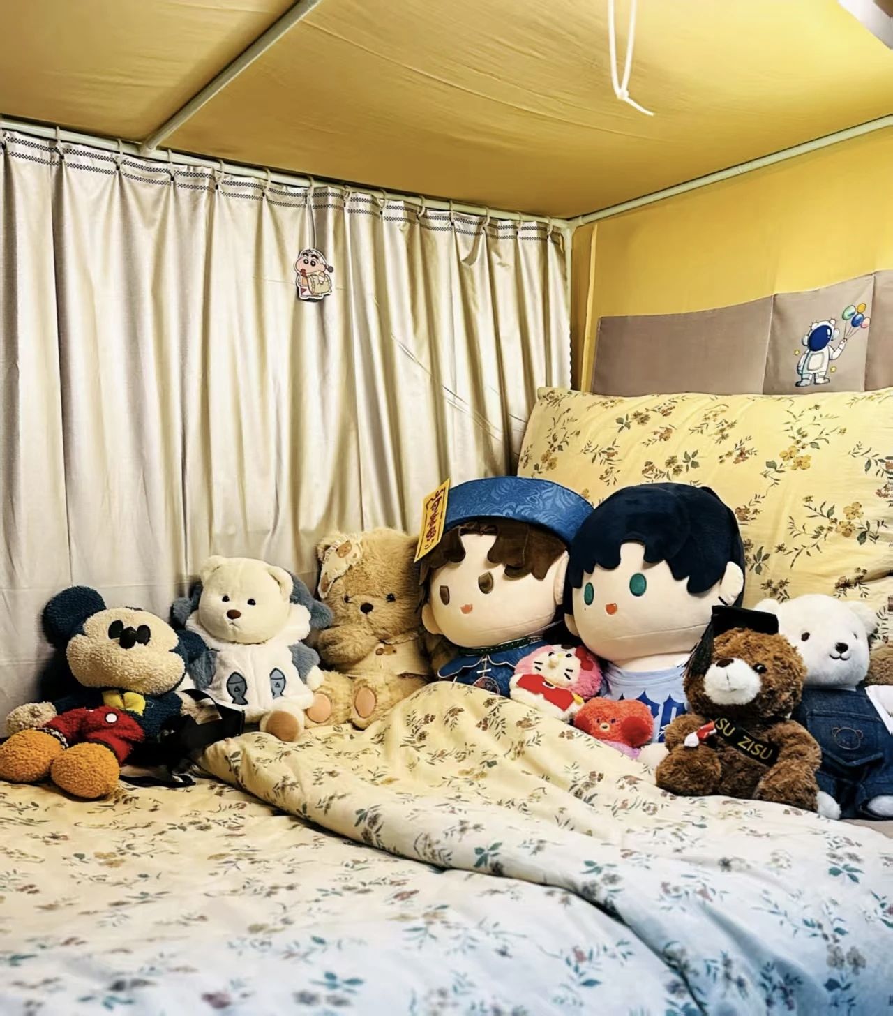 寝室围绕“温馨”的主题,床铺用暖黄色床品搭配毛绒玩偶,营造怀抱式柔软感;书桌用串灯、相框照片打造暖心氛围,再摆上治愈系小摆件。角落放置香薰,让每一处都充满被温暖包裹的松弛感,把寝室变成卸下疲惫的温柔港湾。