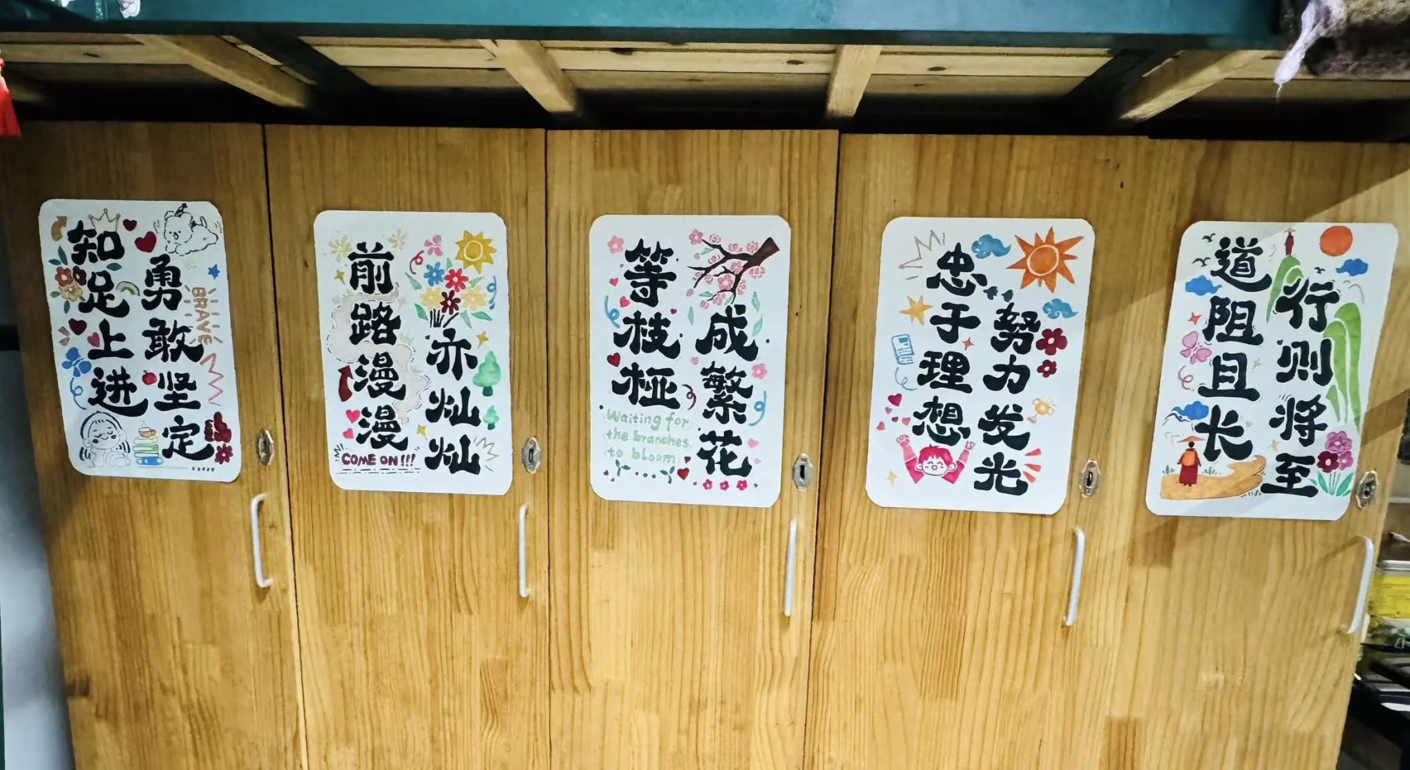 114是一间被温柔与元气填满的寝室~推开房门,先被门上的“在不在”互动牌戳中——几个姓名牌藏着室友间的小默契,旁边的星星蝴蝶装饰像把春天揉了进来。柜子上的手写标语是我们的生活注脚:“勇敢坚定”“道阻且长行则将至”,软乎乎的文字裹着各自的小期待;爬上床铺,串灯缠出暖黄光晕,蝴蝶星星跟着晃成温柔的光斑,像把星星摘进了小窝。桌角的折纸花是闲时的小浪漫,墙上的手绘海报裹着五个人的热闹,连公告栏都被我们贴成了可爱的模样~这里没有多华丽的布置,却攒着每个人的小心思——是可以把疲惫卸在这儿、把笑意堆起来的小天地呀。