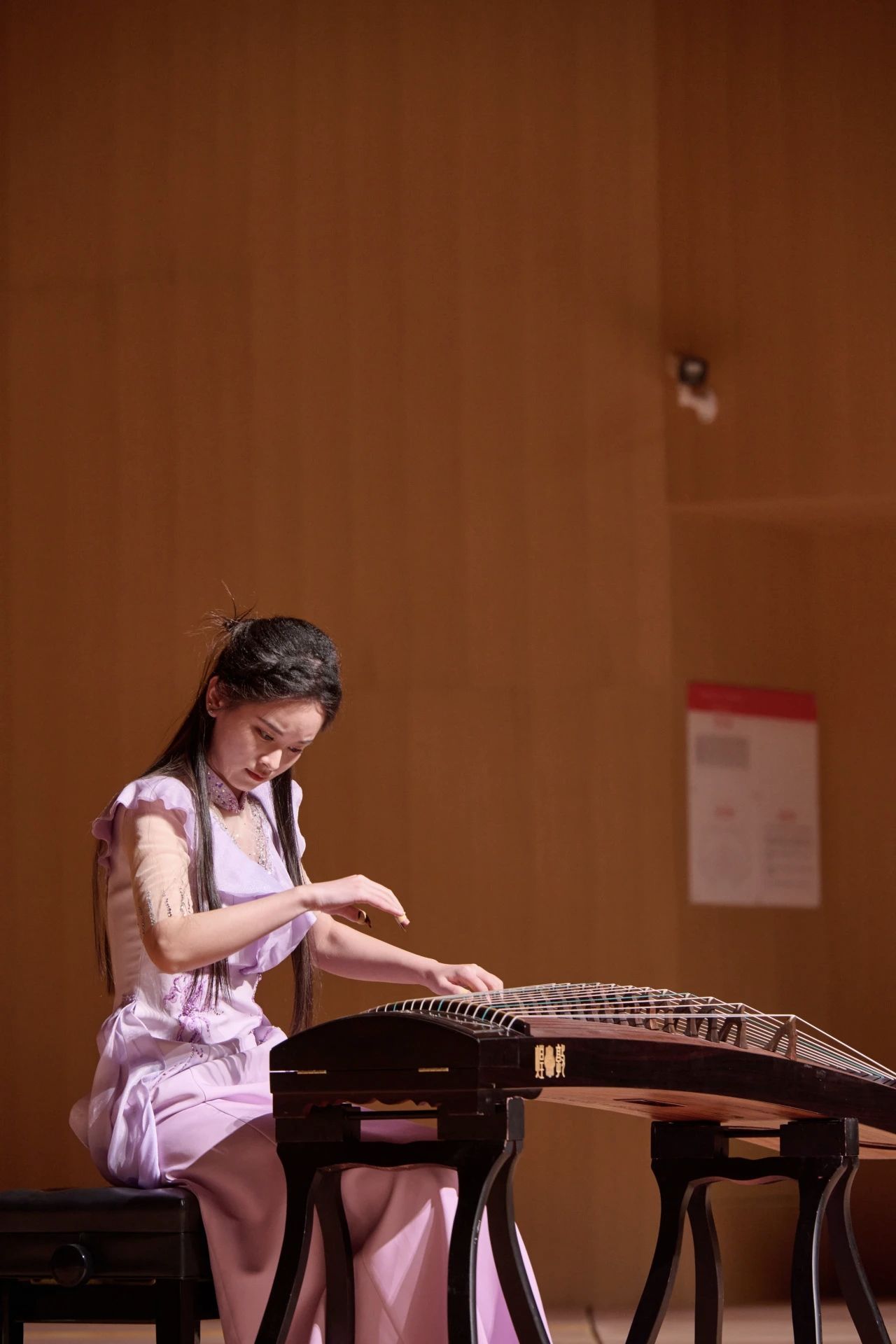 在专场音乐会中,我院大二音乐学专业在校生郑怜恤(指导教师:孔俏俏)演奏了古筝曲《墨客》。这首由著名作曲家方岽清创作的作品,以现代音乐语汇重新诠释了中国文人的精神气韵。