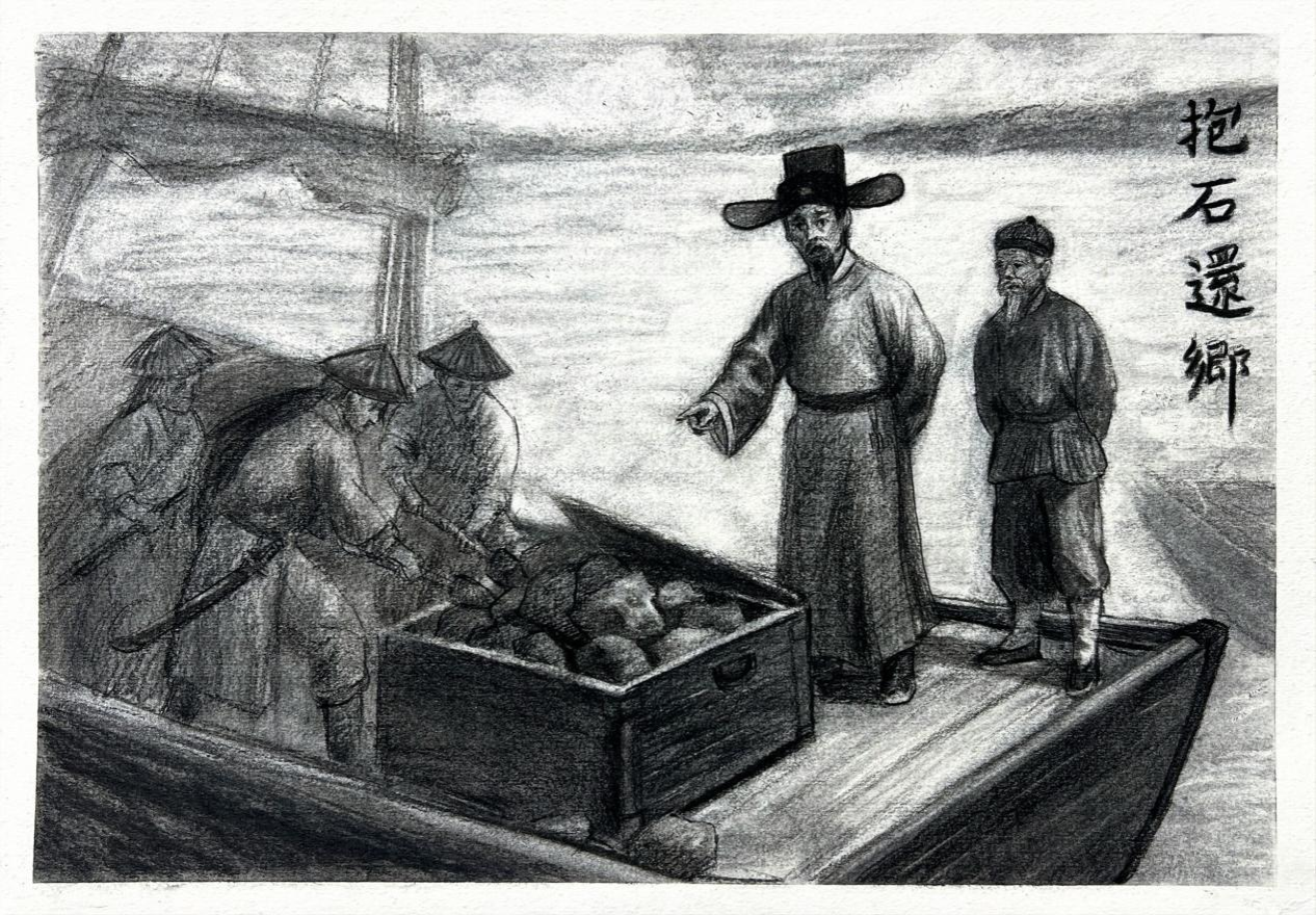 创作说明:通过讲述孙嘉淦抱石还乡的故事,展现其清廉品质与高尚人格,也反映了当时官场风气及乾隆对清官的敬重。