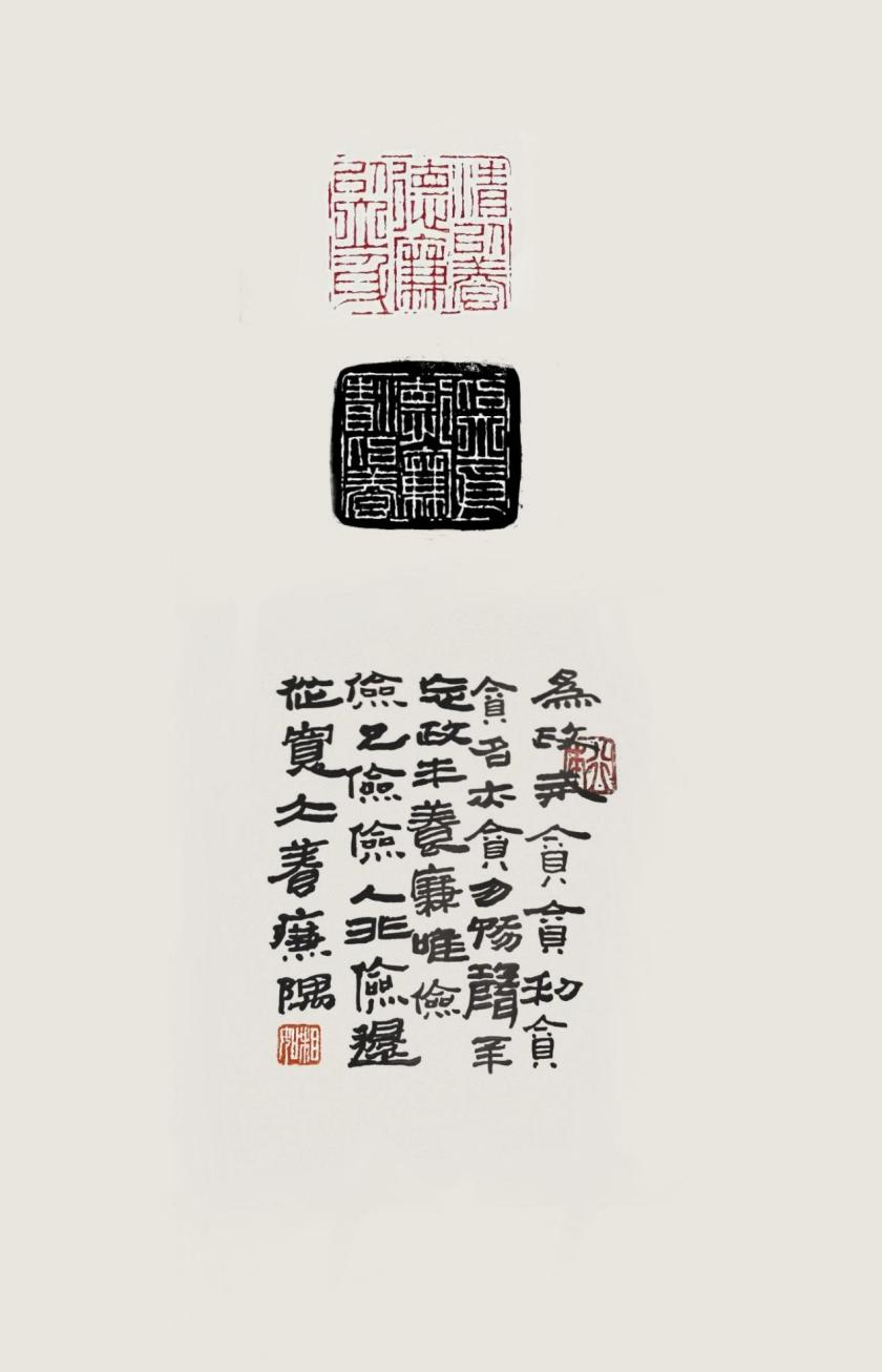 创作说明:以篆刻“清以养德,廉以正身”及古联题跋,彰显王士禛的清廉品格。印文凝练其立身准则,跋语借古训阐明为政之道——拒贪利名、以俭养廉,正是对其革除“样钱”积弊、坚守清操事迹的高度艺术概括。