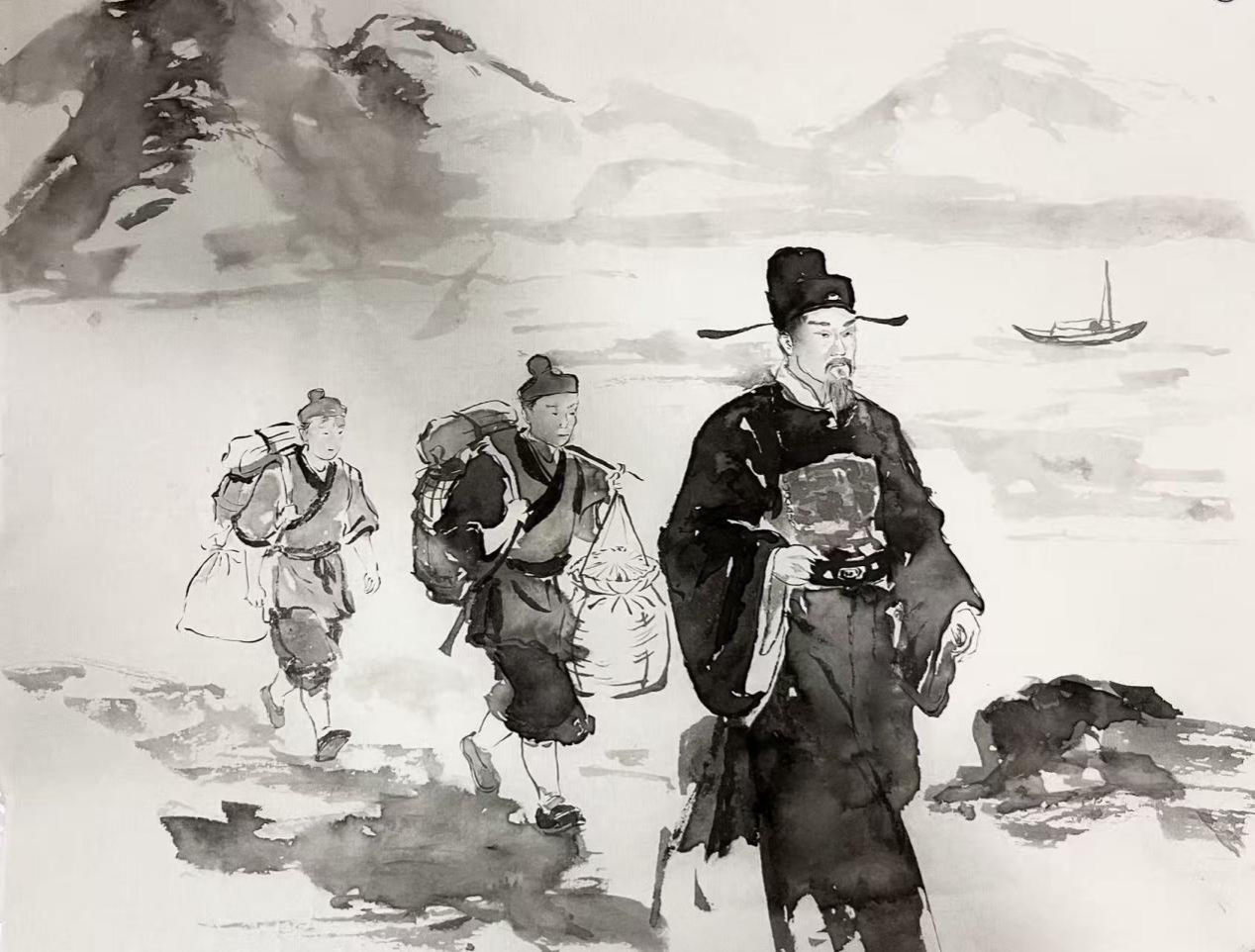 创作说明:突出“自带新米守台湾”的核心行为,以“不领俸禄、自带薪米”为叙事焦点,强调其在腐败环境中坚持清正的品格,借仆从行囊还原其自带薪米的清廉史实,笔墨间凸显其清正品格。