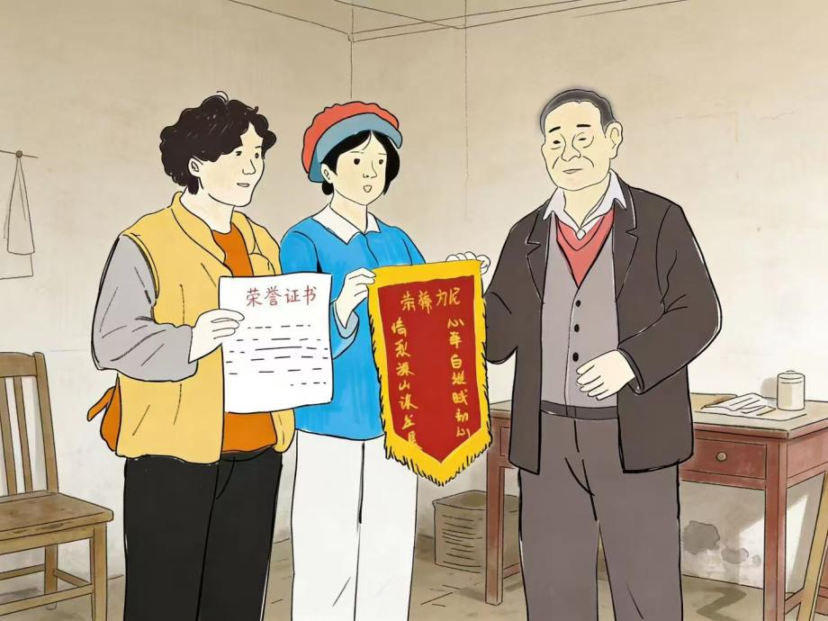 创作说明:以清贫木板房为背景,聚焦屋内锦旗与高德荣质朴身影,用生活场景凸显其清廉为民、扎根基层的品格,凝萃群众感念与榜样力量。