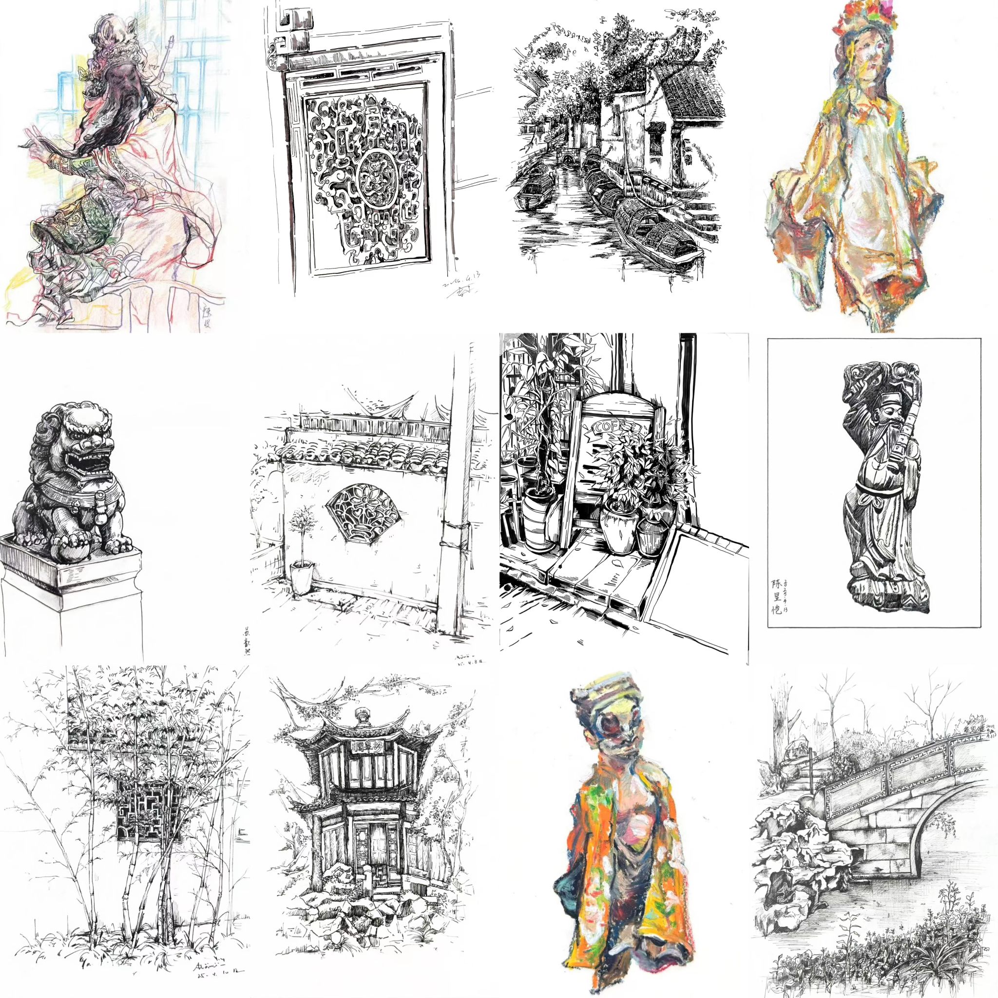 此次写生,我们走进甪直古镇,这座藏匿在苏州的千年水乡,被誉为“神州水乡第一镇”。静谧石桥,潺潺流水,粉墙黛瓦的古巷,如同走进了江南的诗意画卷。深入苏博,她静静伫立在古城一隅,以建筑为诗,以文物为画,诉说着千年故苏的繁华与风雅,传统与现代的交融,光影流转间,仿佛穿越千年,触摸历史的脉搏,领略千年江南的独特魅力。漫步拙政园,一砖一瓦,一步一景的江南春景,感叹其精巧的布局,雅致的景致,深深体会着中式美学、自然与人文的完美结合。