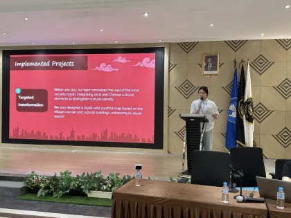 在中印尼双方导师的联合指导下,团队成员开展乡村创意方案设计。艺术学院学生发挥设计、美术、音乐等专业特长,与团队紧密协作,产出丰硕成果。在专题学术交流会上,艺术学院周向力、王朴之两位老师结合各自研究领域,分享了学术成果,展现了浙外学者的国际化学术素养,引发了现场师生的热烈讨论与深入交流。师生代表团还应邀出席印尼客属联谊总会的欢迎宴会,与当地华侨乡亲、孔子学院代表共庆农历新年,在温馨氛围中感受跨越山海的文化亲和。