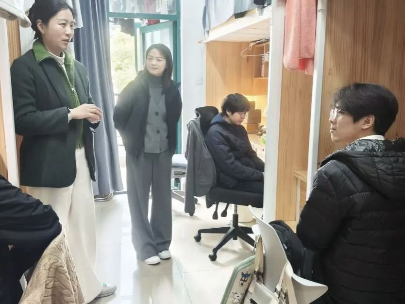 在大三学生寝室,丰书记格外关心同学们的就业意向,结合当前就业形势与专业特点,为大家提供了宝贵的指导经验和职业发展建议,勉励同学们尽早明确目标、夯实专业基础、提升综合竞争力,为未来升学就业做好充分准备。