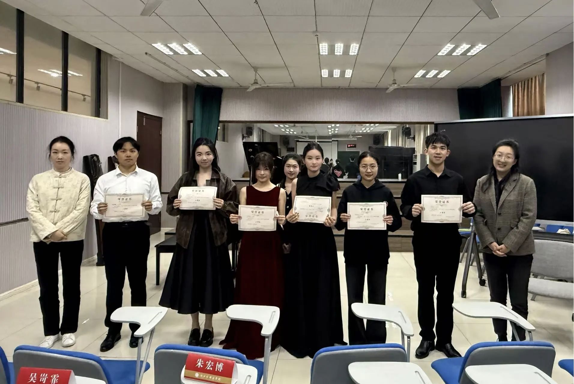 本次比赛邀请到吴岢霏、朱宏博两位老师担任评委。评委老师们从演奏技巧、音乐表现、作品理解与艺术处理等多个维度对选手进行综合评分,并在赛后对选手们的表现给予高度肯定,同时提出了进一步提升音乐表现力与舞台感染力的建议。