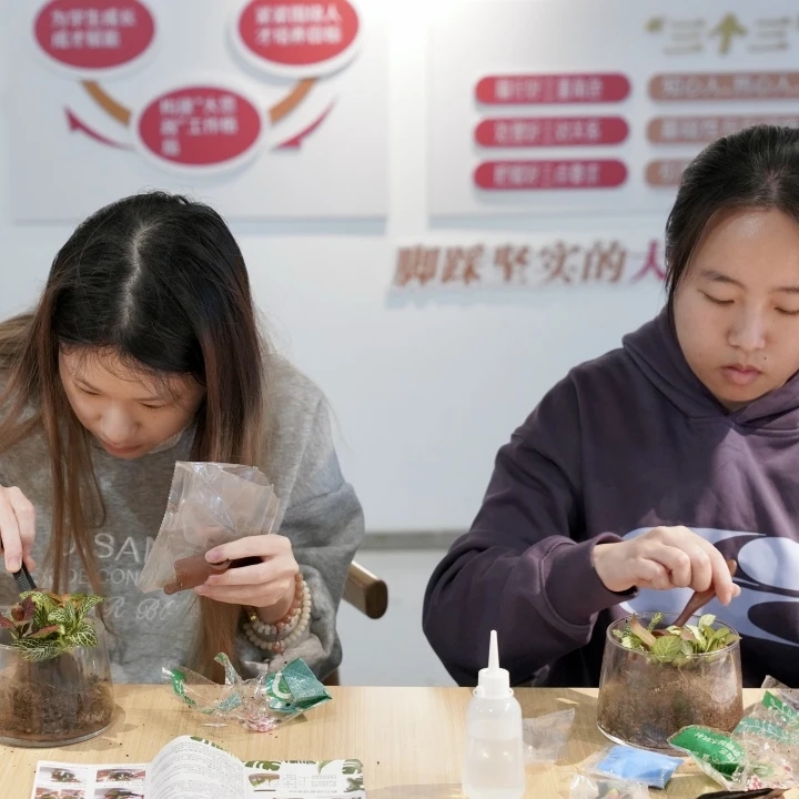 春日渐暖,为丰富校园文化生活,营造轻松愉悦的校园氛围,提升师生动手实践能力,近日我院在学生文化社区举办了微景观手工制作活动。党委学工部部长田俊杰来到现场,与师生一同体验创作乐趣,活动还吸引了留学生热情参与。一场以自然为灵感、以匠心为底色的创意之旅,在师生们的指尖温柔绽放。